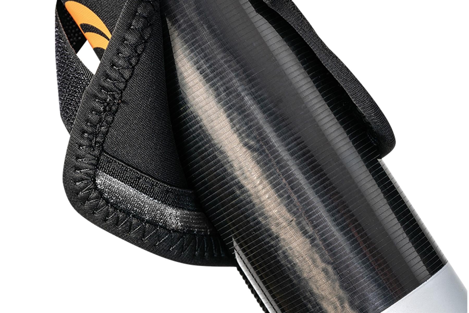 The Pole Safe is a ‘top and tail’ design, with protective elasticated neoprene cups on either end of an elasticated strap. The cups fit neatly over the ends of a pole, with the elasticated strap holding everything together neatly and securely in place. The cups are padded and fit snug to prevent any damage to the all-important end parts of the pole, while at the same time holding the pole in place when its packed away in storage and transport.