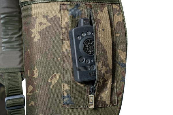 The impact and water-resistant Subterfuge Hi Protect Rod Skin design, with capacity to carry 3 made up rods with the largest big pit reels and 50mm ringing. External base pouches and compression webbings allow additional Hi Protect 1 Rod Skins to be carried to boost capacity to 4 or 5 rods or landing nets and retainer slings to be carried externally.