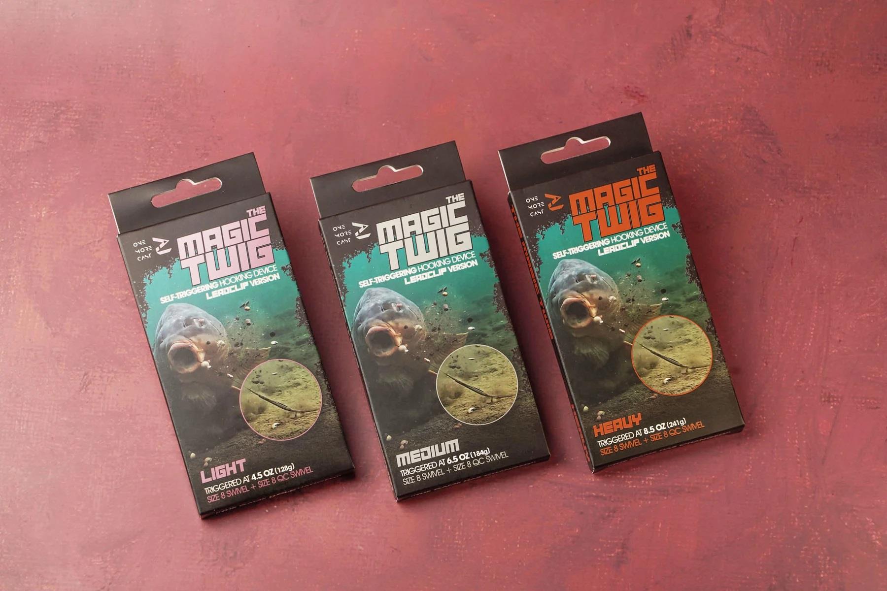 This can be used with any lead size. From lighter options right up to 10-12oz or more. The 8.5oz “Triggered AT” means the amount of pressure needed (and the weight of retractable force) from a stationary position at the hook end to release the mechanism and recoil with the 2nd anchor point being either your lead or lead + tension in your line. When using lighter leads, or Running Rigs - a quick build-up of tension will Trigger The Magic Twig to recoil giving a quick “prick” to the fish beyond what they would normally get with a conventional rig causing them to bolt quicker in the earliest parts of them picking up your rig. When using a HEAVIER lead higher than the stated Spring load, the device will Trigger at the point the Hooklink tightens and is about to reach the weight of the lead. The short prick will result in more bites, faster bites & better hookholds!