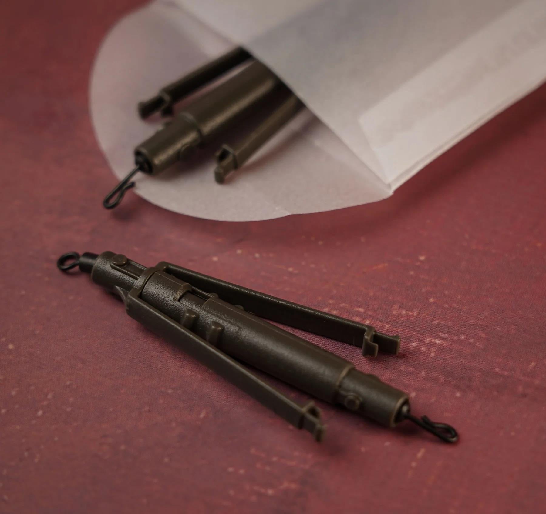 The Lead Clip Version is extremely easy to use, it compliments our OMC Pin Lead Clip that houses a Size 8 Swivel. Pull into the Lead Clip, then quite simply connect your Hooklink to the Size 8 QC Swivel at the other end of The Magic Twig.