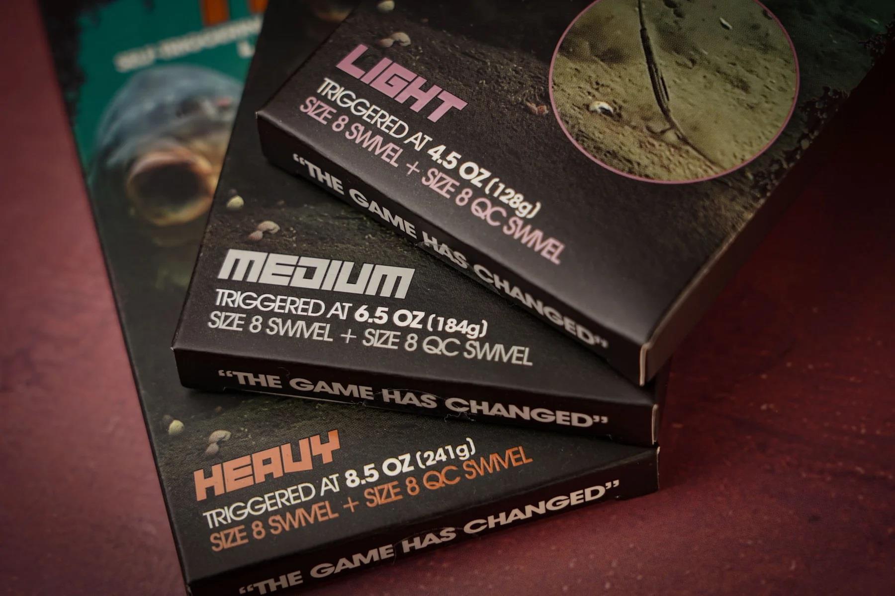 This can be used with any lead size. From lighter options right up to 4.5oz or more. Also worth noting is that on some lake beds when you cast your weights will sink into the lake bed causing additional weight. The 4.5oz “Triggered AT” means the amount of pressure needed (and the weight of retractable force back) from a stationary position at the hook end to release the spring mechanism and recoil with the 2nd anchor point being either your lead or lead + tension in your line. When using lighter leads, or Running Rigs - a quick build-up of tension will Trigger The Magic Twig to recoil giving a quick “prick” to the fish beyond what they would normally get with a conventional rig causing them to bolt quicker in the earliest parts of them picking up your rig. Resulting in more bites, faster bites & better hookholds!