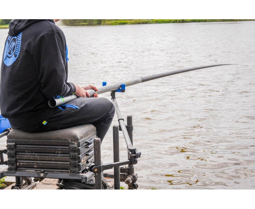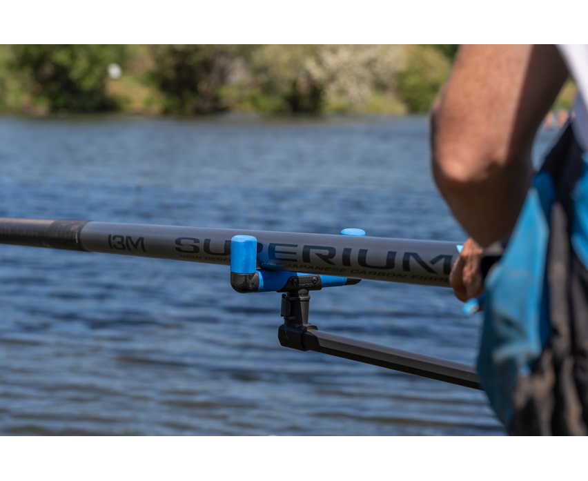 The brainchild of Des Shipp, this product has been designed to make fishing long lengths of pole effortless. Featuring a strong rear knuckle & sliding attachment, the pole can be angled in multiple positions effortlessly. The rotating EVA front rest takes the weight of the pole allowing effortless fishing.